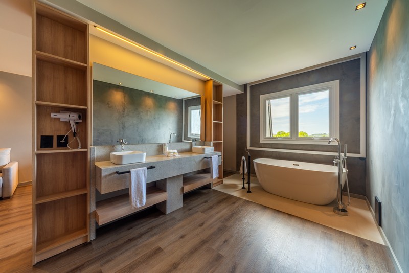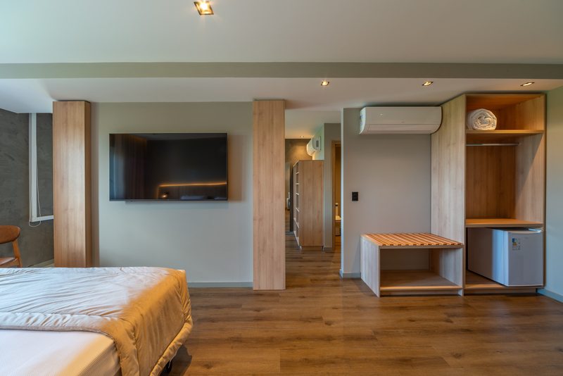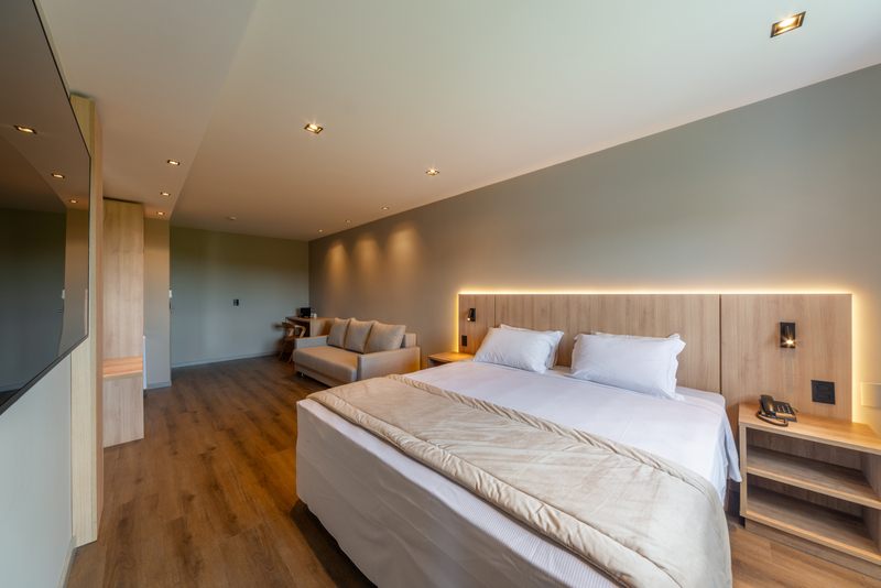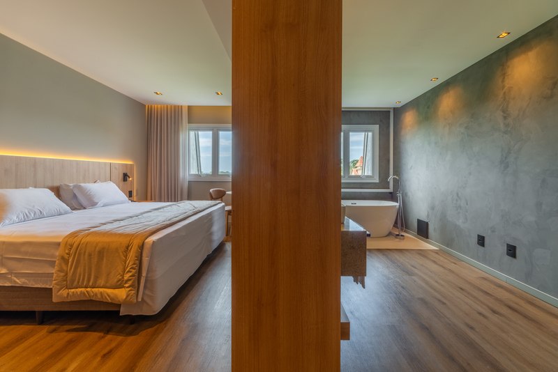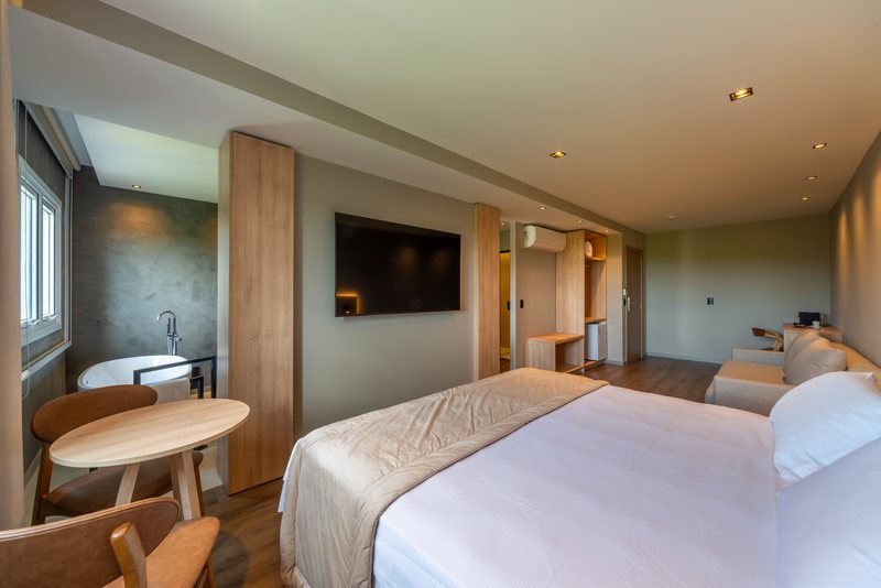 Aprox. 46m². Acomoda até 4 pessoas, com conforto e banheira de imersão para momentos de relaxamento.