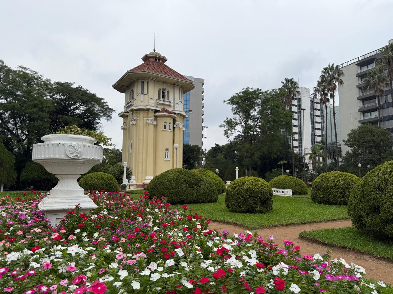A poucos metros dali, os Jardins do DMAE complementam o cenário com um ambiente mais reservado, marcado pelo paisagismo e pela tranquilidade, um contraste sutil com o ritmo urbano ao redor.